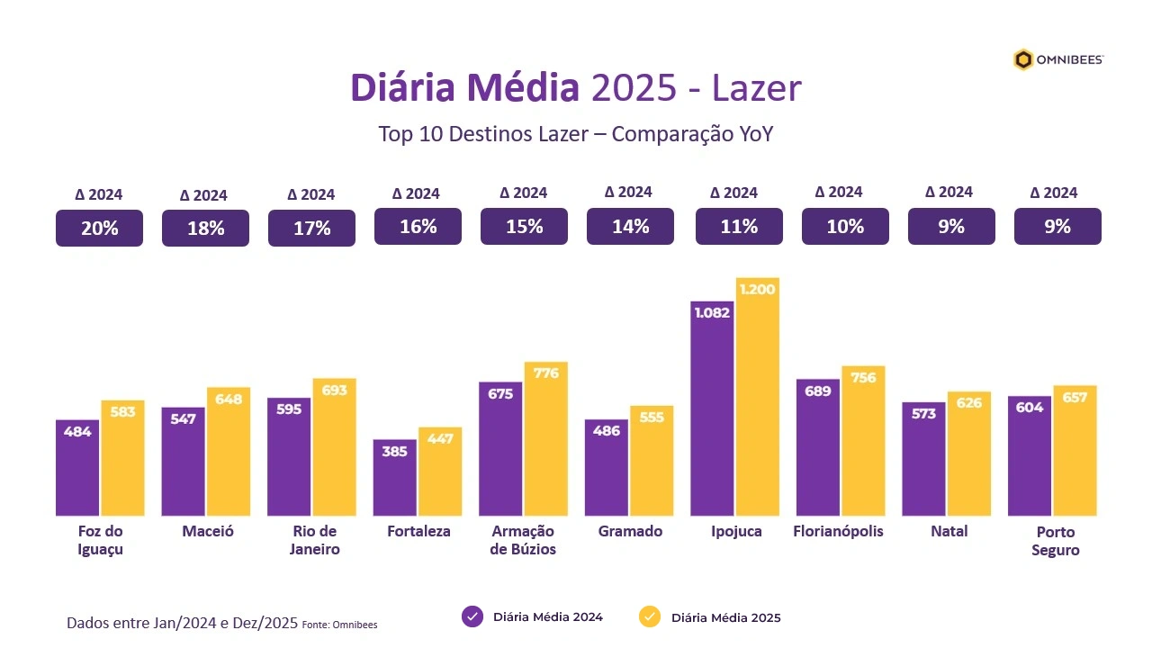 Este conteúdo foi apresentado no Fórum Panrotas 2026 e foi elaborado a partir da base de dados da Omnibees — uma das maiores bases hoteleiras do país.
