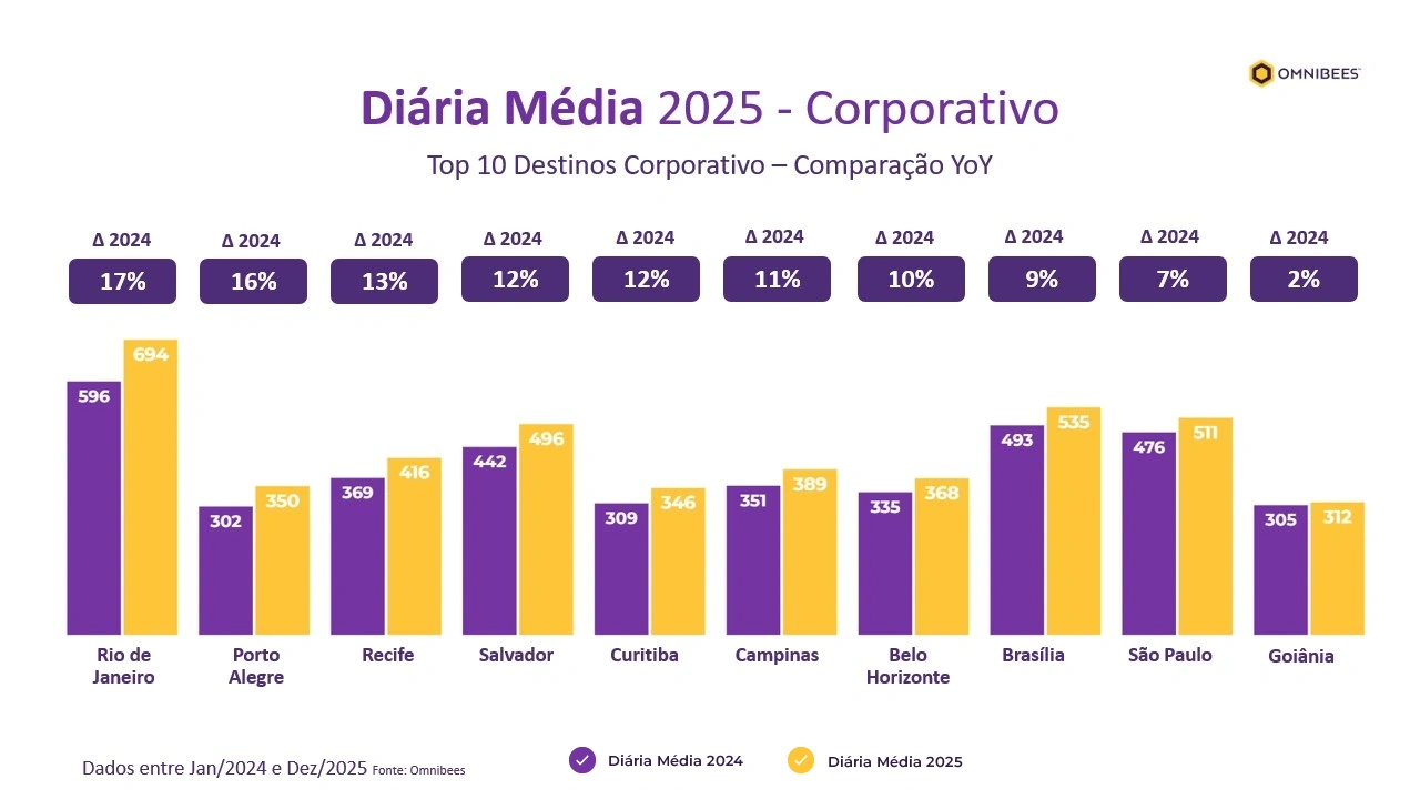 A variação da diária média revela um movimento heterogêneo entre os principais mercados corporativos.